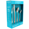24-piece set includes six 8-1/4" dinner knives, six 7-1/4" dinner forks, six 7" dinner spoons and six 6" teaspoons.